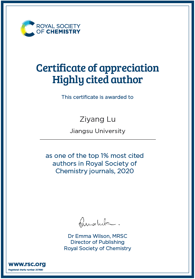英国皇家化学会于1841年成立于伦敦,在国际学术交流、主办期刊、会议、科学研究、教育以及向公众传播科学知识等领域享有盛誉。英国皇家化学会出版的期刊多数被SCI收录,是学术研究的重要信息来源。为彰显作者对研究领域的突出贡献,英国皇家化学会对旗下四十多本期刊发表论文的引用情况进行统计,将2018、2019年发表的论文在2020年的被引次数在全球排名前1%的名单进行了筛选,这也是沙巴官网