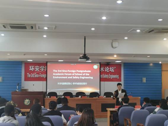 博士生导师张祯教授,张祯教授向研究生们分享了其课题组发表在国际重要杂志的高水平研究,如TBBPA家族污染物免疫分析新方法的建立及其环境分布调查,以及基于四面体DNA纳米结构(TDN)新方法及其应用。张祯教授的报告内容丰富、深入浅出,开拓了研究生们的学术视野和学术思维。7个海外研究生学术报告和8名中国研究生学术报告,是论坛学术委员会从踊跃报名的92个研究生提交的报告中评选出的优秀代表。研究生报告围绕“环境”主题,内容涵盖了环境健康与安全、生态入侵、环保新材料、生物质资源利用、安全工程等多个研究方向,研究生准备充分,报告精彩纷呈。专家评委对每个报告都认真点评,所提出的建设性意见,对于研究生们完善其相关研究具有重要的意义。 经过现场专家组评审,本次中外研究生学术报告评选出了特等奖、一等奖、二等奖及三等奖等奖项。其中特等奖被海外研究生Kuasi Kyere-Yeboah获得,一等奖则由Salome Yakubu和Mudasar获得。而墙报特等奖由薛苗苗同学获得,一等奖则分别颁发给了朱兴旺和毛丹妮两位同学。